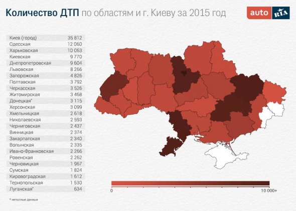 Інформацію надало Управління безпеки дорожнього руху МВС України, але через анексію АР Крим даних по ДТП на півострові немає.