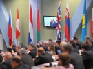 11.00. Розпочинається пленарне засідання почесних гостей. Першим виступає колишній президент Латвійської Республіки Гунтис Ульманіс.