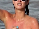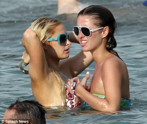 Періс Хілтон продовжує відпочивати зі своєю сім'єю і бойфрендом Сайем на Гаваях. І якщо днями світська левиця одягла на пляж закритий купальник, щоб приховати набрані зайві кілограми, то сьогодні дівчина показала себе у всій красі. Хілтон прийшла на пляж в компанії своєї молодшої сестри Нікі. Щоб не тьмяніти на фоні родички, Періс одягла відверте бікіні в червоних, білих і бірюзових тонах. Молодша Хілтон теж на пасла задніх. Нікі була в яскравому купальнику, який підкреслював фігуру дівчини.