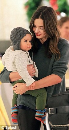 Міранда виглядала дуже просто в зеленому вільному светрі, чорних шкіряних легінсах і в такого ж кольору балетках. 28-річна модель дуже ніжно і дбайливо притискала до себе свого сина.