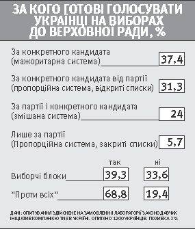 Люди більше підтримують зараз мажоритарну систему виборів, оскільки не знають усіх правових тонкощів вітчизняної політики. Тому готові вибирати з того, із чим уже знайомі. Як на мене, найбільш прийнятна для України сьогодні пропорційна система з відкритими списками, з регіональними округами. Вона зменшує тотальний вплив на вибори через адміністративний ресурс. Партії будуть чесніше ставитися до перегонів. Коли партійні списки закриті, то виборці взагалі не потрібні. А за відкритих списків люди бачитимуть, кого висувають партії. Це дасть виборцям реальний механізм впливу на склад парламенту.