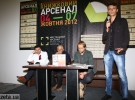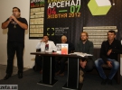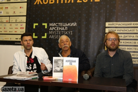 На презентацію прийшов колега Бондаря по авторських колонках Віталій Жежера. Розказав, що дорогою до "Мистецького Арсеналу" читав у метро "Морквяний лід".