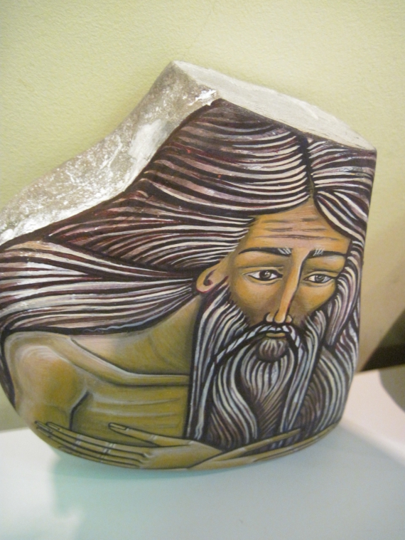 "Ці ікони нічим не відрізняються від тих, що намальовані на дошці - та ж сама технологія, - пояснює художник Данило Мовчан. - Камінь - чудовий матеріал для фарбування. Мені запропонували долучитися до проекту, і я з радістю погодився."