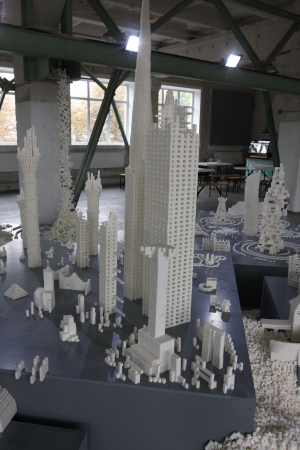 Брендан побудував модель столичного Будинку вчителя. Витратив на нього три тижні. Це одна з найскладніших споруд інсталяції, бо має дрібні різьблені елементи. Марк Ревелз створив архітектони художника Казимира Малевича - об'ємні композиції, в яких геометричні фігури "врізаються" одна в одну під прямим кутом. Митець вірив, що саме такою буде архітектура майбутнього. Моделі Малевича нагадують сучасні хмарочоси.