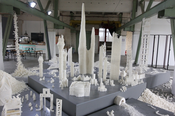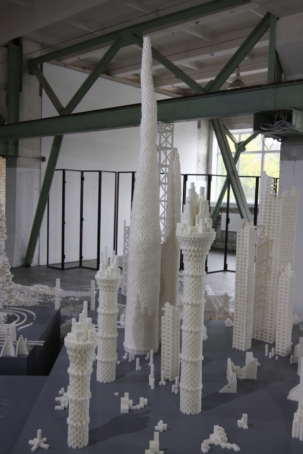 Проект розмістили на другому поверсі промислової будівлі, що використовує фонд "Ізоляція". Посеред зали з колонами - сірі платформи до півметра у висоту. На них стоять фігури з цукрових кубиків - сучасні будівлі, водоспад, піраміди, футуристичні споруди. Поблизу на підлозі розсипані купи цукру-рафінаду. З них відвідувачам пропонують побудувати власні споруди.