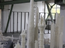 "Для інсталяції використали понад півмільйона кубиків цукру. Це понад тонну. Художники кажуть, що цукрові споруди майже вічні. Якщо їх не чіпати, термічно не оброблювати, то з ними нічого не станеться", - розповідає 27-річний Олександр Виноградов, менеджер зі зв'язків з громадськістю у столичному культурному фонді "Ізоляція". Там представляють інсталяцію "Цукрова демократія". Її створили художники-скульптори з Північної Ірландії 37-річний Брендан Джеймісон і Марк Ревелз, 38 років.