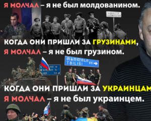 "Коли вони прийшли за молдаванами, я мовчав - я не був молдаванином; коли вони прийшли за грузинами, я мовчав - я не був грузином; коли вони прийшли за українцями, я мовчав - я не був українцем; коли вони прийшли за мною - вже нікому було заступитися за мене ".