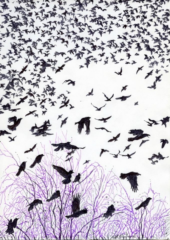 Серед робіт є повністю штриховані малюнки, орнаменти, ледь промальовані портрети людей, пейзажі або ж довільно розміщенні геометричні фігури. Є і роботи з "упізнаваними сюжетами" київського Євромайдану.