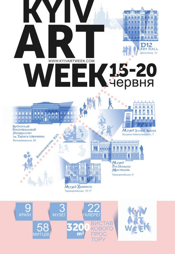 Головне завдання Kyiv Art Week – ознайомити киян і гостей міста з мистецтвом у комплексному форматі. Для зручності відвідувачів організатори склали культурний маршрут центром столиці – від Київського національного музею російського мистецтва, до червоного корпусу університету ім. Шевченка.