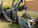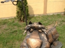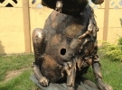 На подвір'ї показує фігуру дівчини, у волосся якої вплетені квіти. Каже, її звати Дариночка. Це ескіз 4-метрової скульптури, яку планують виготовити 23-25 серпня в Рівному на "Міжнародному фестивалі "Металеве серце України", який вона організовує.