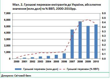 Оскільки Україна взяла курс на європейську інтеграцію, цілком імовірно, що спокуса і відносно легкий доступ до Європи сприятимуть ще більшому "експорту висококваліфікованих кадрів" з країни. Тим не менш, експерти зазначають, що еміграція висококваліфікованих кадрів корисна для країни і насправді може надати різні переваги для країн-донорів. Наприклад, грошові перекази з-за кордону (графік 2) часто сприяють росту місцевої економіки, вливаючи готівкові кошти в середовище з низькою продуктивністю або можливостями розвитку. Крім того, дуже часто "експорт висококваліфікованих кадрів" – це вулиця з двостороннім рухом, тобто спочатку студенти та кваліфіковані фахівці залишають країну з метою отримання більш високоякісної освіти та більшого доходу, а потім повертаються до своєї рідної країни з новими ідеями та удосконаленими навичками. Загалом, чим кращі можливості в країні, в якій спостерігається відтік висококваліфікованих кадрів, тим вища ймовірність повернення висококласних фахівців до себе на батьківщину.