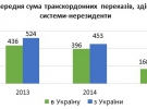 Торік обсяги грошових переказів в Україну досягли $2,5 млрд, це на $1,4 млрд менше, ніж у 2014 році. Середня сума одного переказу в Україну скоротилася на 58% до $168. При цьому середній чек переказу за кордон з України досягає $300.