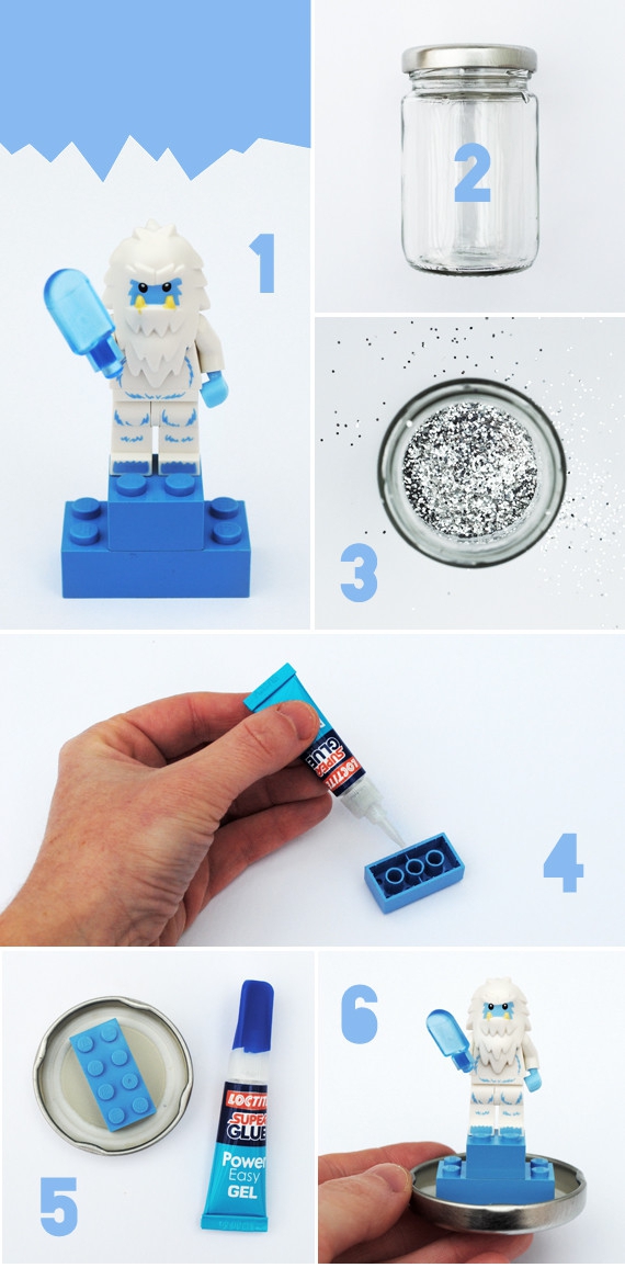 5.Посадіть непотрібні фігурки з ЛЕГО в чарівні сніжні кулі