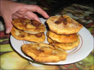 Із тіста слід зробити невеликі коржики, розкачати їх качалкою. У сковороді із смальцем обсмажити з обох боків. Пундики піднімаються і виходять пухкі.