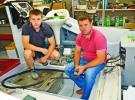 — Кузов робимо зі склопластику, — пояснює. — Він кращий за метал. По-перше, ідеально гладкий, краще ковзає по воді, через що човен розвиває більшу швидкість. По-друге, склопластик не іржавіє, не гниє. По-третє, його легше обслуговувати і ремонтувати. Якщо налетиш металевим днищем на камінь, то доведеться заклепувати, запаювати. Кузов ослабляється. А склопластик заклеїв іншим шаром, і він стає ще міцніший.