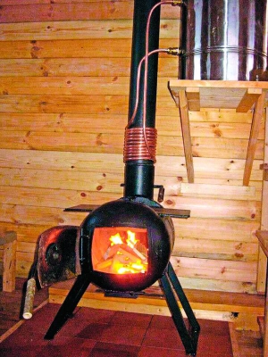 — До бочки треба приєднати дві мідні трубки. Одну — вище, другу — нижче, — додає. — Накрутити їх на димохід і з'єднати з буржуйкою. Принцип самогонного апарата, але трохи простіше. Коли горять дрова, вода нагрівається і піднімається вгору в бочку. Холодна звідти опускається назад по трубі. Так циркулює, доки стане певної температури. В мене бочка води нагрівається за годину. Якщо треба швидше, то мідної трубки на димоході має бути більше.