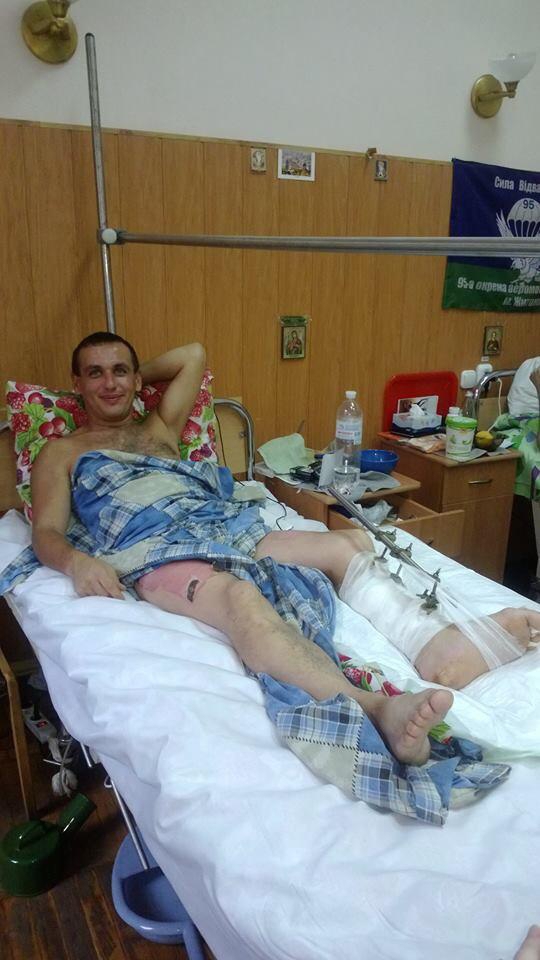 "Снаряд пропалив броню, пробив мені ногу, відірвав ногу водієві моєї машини, Юрі Весельському, пробив наскрізь машину. Крім мене і Юри ніхто не постраждав. Ми відкрили у відповідь вогонь. Я в цей час майже не відчував поранення: зрозумів, що пече щось в нозі ... Коли я встав і нагнувся в БТР, щоб дістати другий барабан, відчув, що лівої ноги у мене немає. Вона була відірвана і висіла на невеликому клаптику шкіри. Я підвівся на правій нозі, виліз нагору і продовжив стрілянину, хлопці вискочили з мого БТРа, зайняли оборону. Поки я стріляв, відчув, як Юрка Весельський мені перев'язував ногу джгутом вище коліна, щоб зупинити кровотечу. Хлопці знайшли мені рюкзачок, в який я поставив свою відірвану ногу, обв'язав її, зняв з себе бронежилет, автомат, все це склав у БТР, щоб не загубилося. З собою я взяв тільки пістолет на всякий випадок і гранату. Моя мама досі не знає, де я перебуваю і що зі мною трапилося. Їй знати не можна, їй 74 роки, у неї хворе серце. Ми повідомили їй, що я випадково впав на полігоні і в мене відкритий перелом", - розказує Сергій.