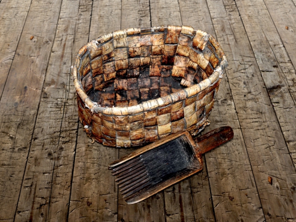- На Поліссі чорниці називають ягодами. Дерев'яні гребінки для них робив тільки один майстер у нашому селі. Вирізьбив із листяних порід дерева основу. Кожен зубчик прорізав окремо і держак прибивав гвіздком, - розповідає Антоніна Григорівна. - Зараз гребінки роблять із дротяними зубцями, бачила і пластмасові. Такі більше шкодять чорничним кущам, ніж дерев'яні. А ликові кошики з кори берези вміли плести всі чоловіки. Такий служив років 10, доки не розсипався.