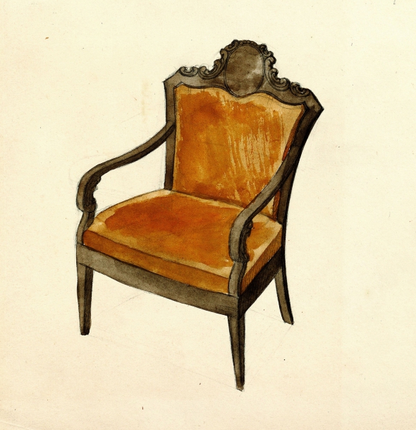 У квітні 1918-го до влади приходить гетьман Павло Скоропадський. Нарбут малює ескізи нових грошей. Розробляє проекти форми для гетьманського двору, урядових установ і війська. І навіть крісла для державного сенату (на малюнку). У грамотах і запрошеннях, дипломах професорів УАМ використовує ним самим розроблений шрифт, навіяний письмом Пересопницького Євангелія XVI ст.