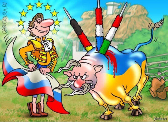 Так само в пропаганді адептів третьої імперії зараз лунають закиди, мовляв, Україна – це вигаданий проект, а насправді за нами, українцями, стоять наші господарі американці тощо. Ця казка не нова. Наприклад, існує карикатура, де зображено, що за українцями стоять поляки й інші. А самі українці начебто не мають усвідомлення процесу творення власної держави".