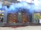 Ініціативна група залишає будівлю ГПУ. Головний вхід вже майже відмитий.