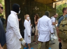 Приблизно за півгодини до залитого кров'ю входу приїздить слідчо-оперативна група. Вони збирають кров на експертизу. Коментарі не дають і швидко їдуть.