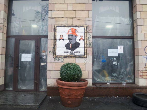 Івана Франка в касці, Тараса Шевченка з хусткою на обличчі та Лесі Українки у протигазі на стінах біля самих барикад зобразив київський стріт-арт художник #Sociopath.