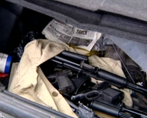 При огляді авто VolkswagenPassat і Honda CR -V було виявлено цілий арсенал зброї: "Під час перевірки багажників транспортних засобів було виявлено засоби індивідуального захисту і 6 одиниць армійського, мисливської нарізної та гладкоствольної зброї та спецзасобів травматичної дії, а саме: 9 мм травматичний пістолет ПМР, 9мм травматичний пістолет ПМ "Вій", 9 мм пістолет системи Browning, рушницю Mossberg 500 , 7,62 мм гвинтівка Erma і 7,62 мм карабін МКМ ".