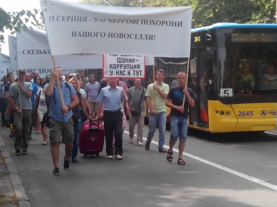 15 серпня у Києві пройшов марш власників квартир будинку по вулиці Щербакова 53. Колона пройшлась по проїжджій частині вулиці. З собою тягли сумки та валізи. Вимагали, щоб їм дозволили поселитись в власне житло, яке ніяк не добудують.