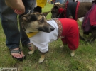 У конкурсі на найкращий костюм взяли участь півсотні собак. Вони терпляче ставилися до костюмів, які спорудили для них господарі і не скидали їх.
