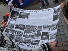 "Щохвилини від голоду помирало 17 людей, щогодини – тисяча", - каже у мікрофон ведуча акції. Після хвилини мовчання хлібину ділять на шматочки і пригощають ними перехожих, які проходять майданом. Навколо стенду збирається близько 20-ти чоловік.