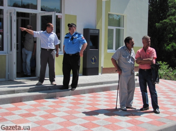 "Щось відкриття без червоної стрічки, - махає рукою житель будинку навпроти Федір Коваленко. Прийшов раніше, щоб побачити міністра. - Півтори години на сонці печуся, вся сорочка мокра, хоч викручуй, а вона щось запізнюється. Хочу поскаржитися на малу пенсію, може й мені тут якусь роботу знайдуть. Бо жити немає за що. Пішов би, на "Верес", але вже старий".