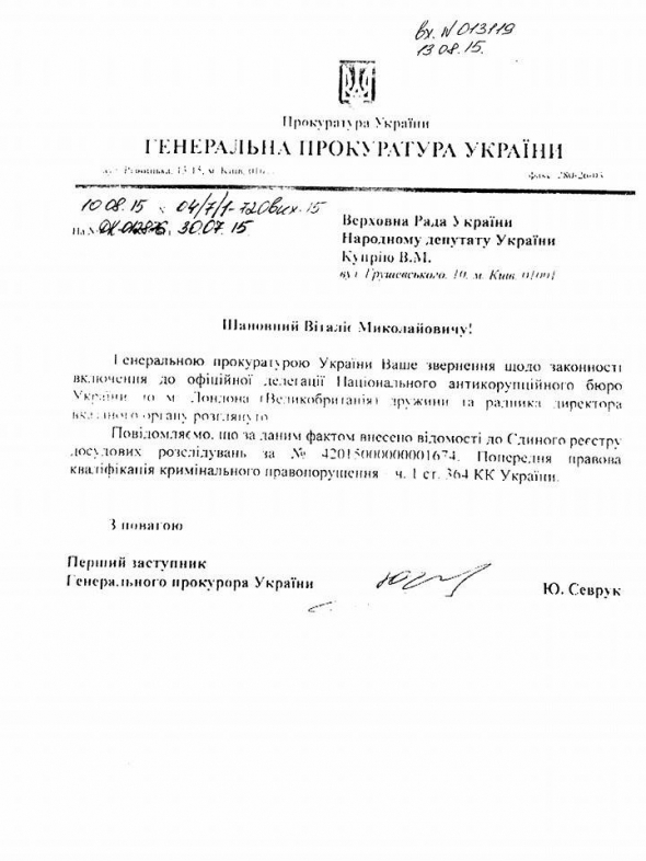 Відповідний документ надала Генеральна прокуратура у відповідь на депутатський запит Віталія Купрія, яке є в розпорядженні Gazeta.ua