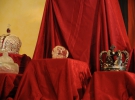 "Повна експозиція корон буде представлена на огляд лише через два місяці, - розповів віце-президент фонду Бориса Возницького Ігор Жук. - Сьогодні ми ж хотіли показати корону майя, оскільки в світі ширяться чутки, ніби завтра за їхнім календарем має наступити кінець світу. Насправді люди просто неправильно все трактують. Майя не передбачали кінця світу. Має відбутися просто переродження. З матеріального люди переключаться на духовне. Дану корону ми виготовляли майже два роки. Багато часу пішло, щоб зробити її ескіз. Ми досліджували зображення корон на пірамідах, спілкувалися із дослідниками цивилізації майя. Основою є голова леопарда. Вона із дерева та позолочена. Далі зверху неї спеціальна ритуальна маска — символ влади. Прикрашена корона пір'ям."