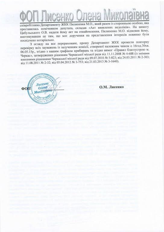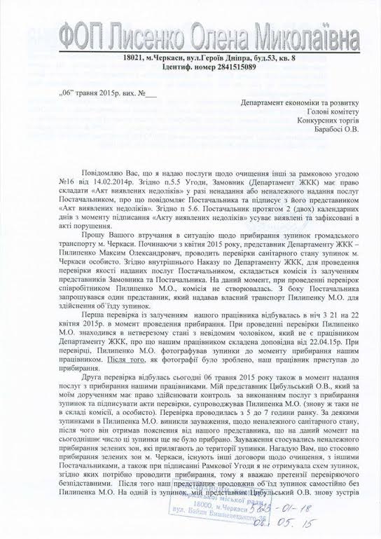 Це підприємство пов'язують з ім'ям одного із черкаських депутатів та секретарем міськради. І саме з вуст останнього звучать "переконливі" докази того, що ФОП Лисенко не виконує тендерну угоду, а от КП ЧЕЛУАШ надаватиме послугу набагато якісніше. От тільки інформації про те, що КП ЧЕЛУАШ рішенням Антимонопольного комітету України ще два роки тому позбавлене права брати участь у будь-яких конкурсах, пан секретар містянам не повідомляє.