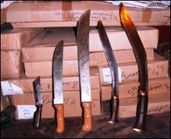 У багажному відділенні рейсового автобуса "Краків-Львів" чоловік сховав сучасні зразки і майже музейні експонати. Зброю у картонних коробках з написом запчастини до мотоцикла контрабандист спакував з іншими речами. Прикордонники виявили 12 штик-ножів до американської гвинтівки М-14 1942 року випуску, 2 мачете американського виробництва часів в"єтнамської війни, палаш у металевих піхвах 1812 року випуску, 1 штик-ніж до французької гвинтівки "Грасс" 1877 року, 4 сучасні ножі австрійського виробництва "Глок" та інші.