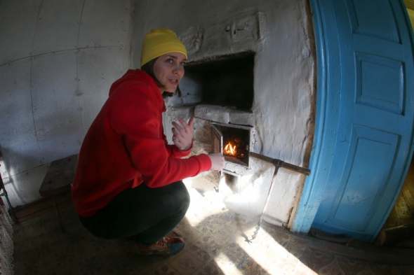 Ночувати самій тут було страшно тільки першої ночі. Від кожного звуку здригалася. Найважче було влежати на гарячій печі. Поклала у пічку дуже багато дров. Уже ніч, а вона все холодна. Вкрилася кількома ковдрами. Прокидаюся серед ночі від того, що я просто жарюся. Спустилася на підлогу і постелила на підлозі каремат. Через півгодини змерзла неймовірно. Полізла на піч назад — а там жар.