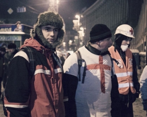 "Слава Богу, ніяких активних військових дій на той час не було, але за два дні я зрозумів, що не так тут легко, як здається, - продовжує Галієнко. - В мобільній бригаді можуть знаходитись досить досвідчені лікарі та медсестри, досвідчені в своїй спеціалізації. Але на Євромайдані досвід зовсім інший – досвід військово-польової хірургії, і специфіка роботи зовсім інша. Я вперше потрапив в таку організовану систему. У звичайних травмпунктах все йде за певним алгоритмом: привозять хворого всього в крові, багато ран, але всі знають, що потрібно робити: зупинити кровотечу, перев'язати рану, покласти на операційний стіл. Тут же в Києві чіткого алгоритму дій немає. Є тривожна сумка з перекисем водню, йодом, бинтами, ватою, джгутами та іншим, з якою мене відіслали на передову".