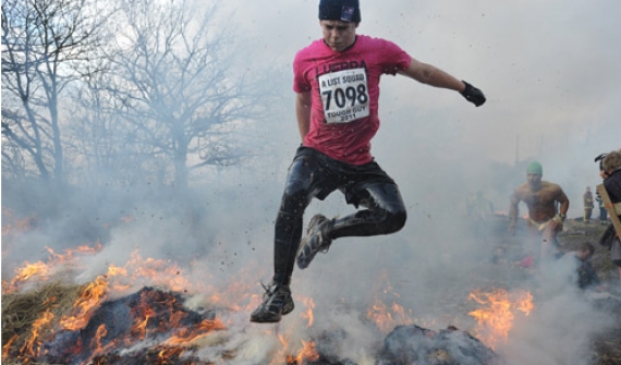 В Англії пройшли змагання на витривалість серед чоловіків з усього світу. Претендентів змусили стрибнути через вогонь, скупатися у крижаній воді і вивалятися з ніг до голови у грязюці.