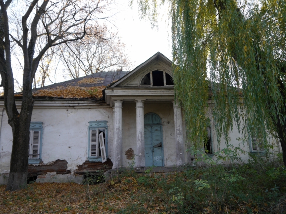 Головний садибний будинок та флігелі групувалися навколо прямокутного курдонера. До нього вела під'їзна алея, по осі якої розташовано головний будинок. Два бічні одноповерхові дерев'яні флігелі фланкували алею. На схід від головного будинку міститься кам'яниця, з західного боку був ландшафтний парк, що спускався до заплави річки Остер. На північ від курдонера містився господарський двір.