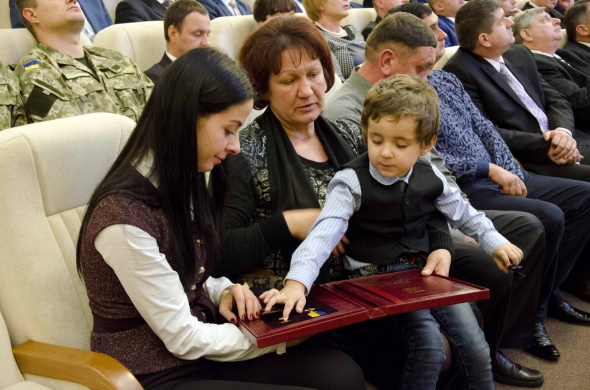 Зіркою Героя України посмертно нагородив президент добровольця батальйону "Київська Русь" 28-річного Сергія Цимбала. Мав позивний "Легіонер". Відзнаку отримували 4-річний син Олександр і вдова 27-річна Лілія.