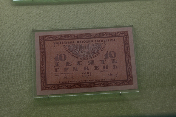"Власна валюта на території України з'явилася 1917 року. Після утворення Української Народної Республіки Центральна Рада зініціювала розроблення національної валюти. В основу грошової системи поклали гривню. Гроші того періоду мають гарний вигляд, бо над їх створенням працювали найкращі українські художники: Нарбут, Кричевський, Золотов. Українська валюта того часу була не тільки гарною, а й котувалася на міжнародних ринках", - каже завсектору нумізнатики музею Зінаїда Зразюк.