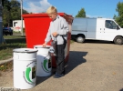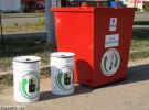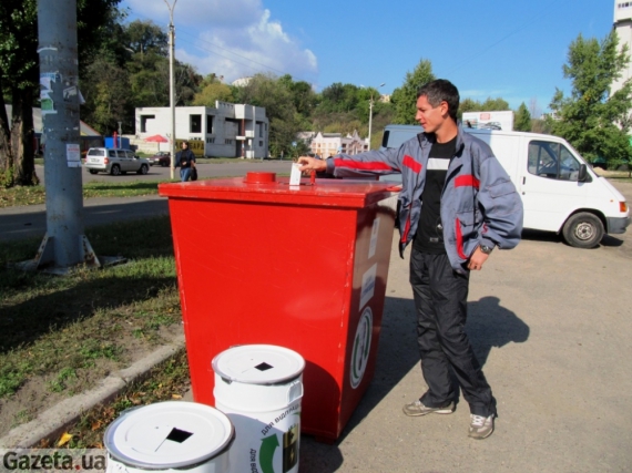 О 10.00 на вулиці Гагаріна для збору небезпечних відходів виставляють спеціальні контейнери. Великий червоний – для збору лампочок. Два менші білі – для батарейок і акумуляторів. Півгодини ніхто до контейнерів не підходить.