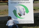 Згодом люди почали підходити й цікавитися. Богдан Бунякін, 9 років, приніс 9 батарейок з електроконструктора. Вкидає їх у контейнер.