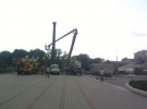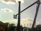 Скульптуру дівчинки спочатку відокремили від постаменту. Потім автокран і автовишка почали демонтувати фігуру орла з вершини.