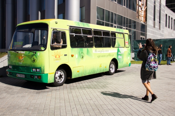 На саморобному електромобілі, який на капоті і даху ще має сонячні батареї, разом з власником покатався навіть міністр екології Ігор Шевченко. Міністр пообіцяв допомогти у прийнятті законопроекту у ВР, який зніме мите на електромобілі, тим самим заохотить людей купувати екологічні машини.