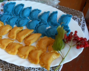 "Робила й жовто-сині вареники для гостей. Для жовтого кольору потрібна куркума, а для синього - спеціальна гуаш".
