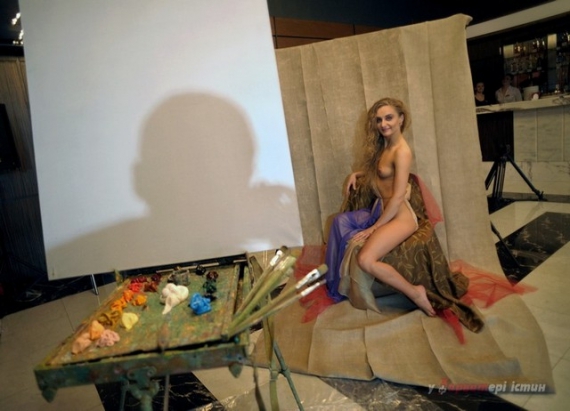 У суботу, 2 березня, в ресторані готелю "Мир" у Рівному столичний художник Володимир Гарбуз на очах півсотні відвідувачів малював портрет у стилі Ню. Йому позувала 26-річна оголена натурниця.