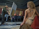 "Цікаво було подивитися. Така симпатична краля позувала. Кажуть, вона танцівницею підробляє ще. Гарно все було й картина така модна вийшла", - ділиться враженнями з сусідом за столиком молодий чоловік.