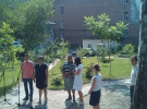 "Цей барельєф - мрія багатьох людей. Це мрія про світле майбутнє, як і сам сквер Небесної сотні. Ми надсилали художникові листа і він погодився приїхати. Це диво, що такий відомий автор погодився на співпрацю. Він працював тут без гонорару, за роботу не взяв ні копійки. Гроші збирали лише на матеріали, багато в цьому допомогла одна зі столичних шкіл. Діти влаштували ярмарок, де продавали свої роботи, пекли печіво. Техніка виконання барельєфу така: на стіну цегляного будинку нанесли шар бетону, потім збивали з нього шматки, таким чином, аби залишилось зображення" - розказує Євгенія Кулеба, засновниця ініціативи "Місто-Сад" та скверу Небесної сотні.